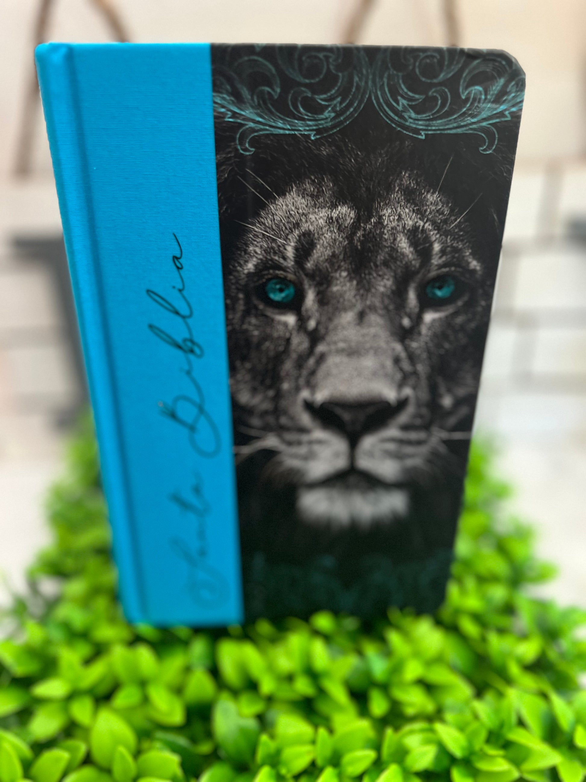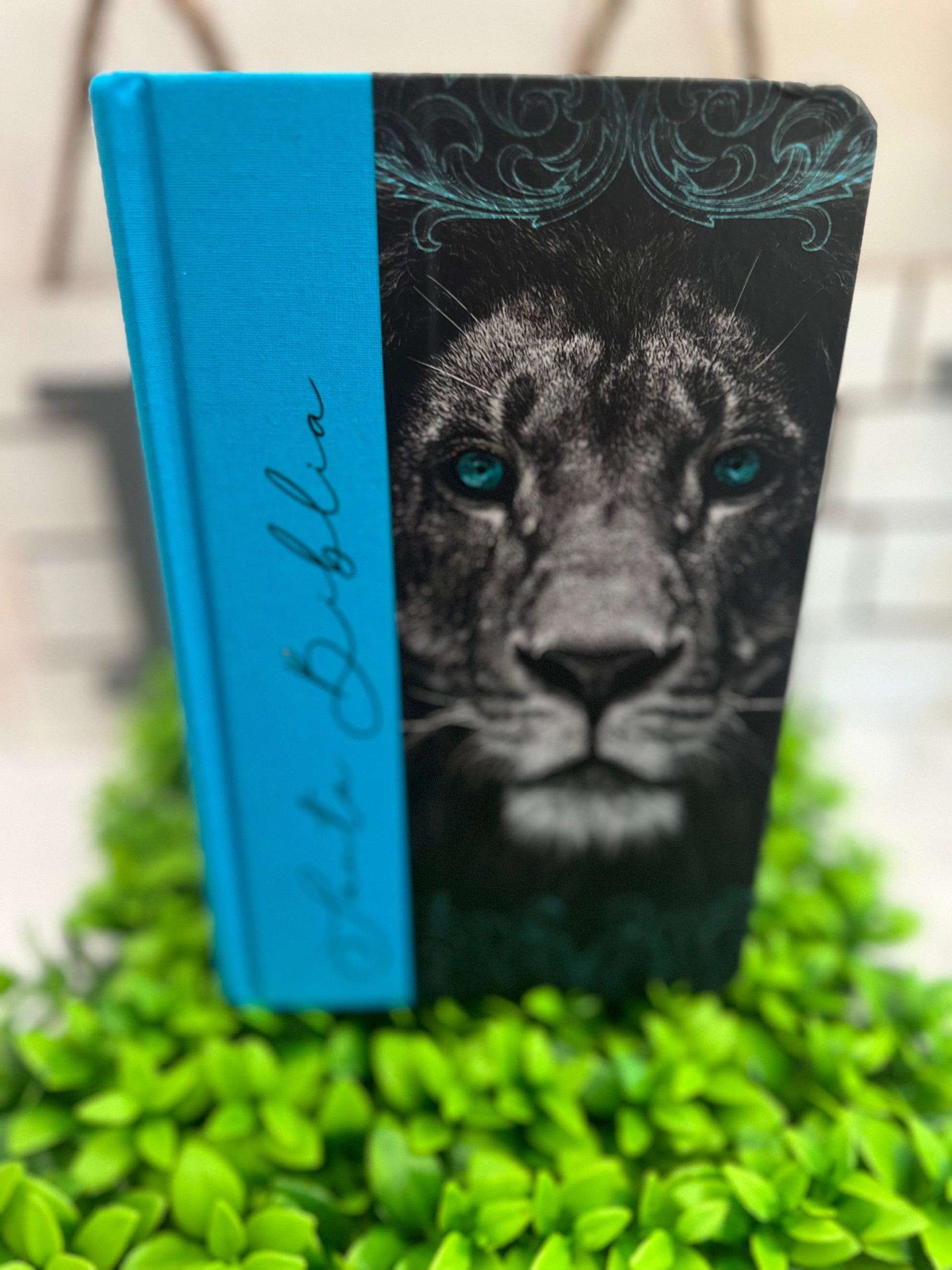 Biblia RVR 1960 letra grande, tamaño manual, tapa dura de tela León aguamarina